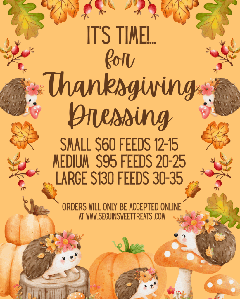 The Holidays are just about to be upon us, and we want to get a jump start on our Thanksgiving Dressing orders. This is a popular item, and we can only take so many orders. Don’t wait till the last min, order today! Payment is required upon ordering https://square.link/u/7VtzOJDP